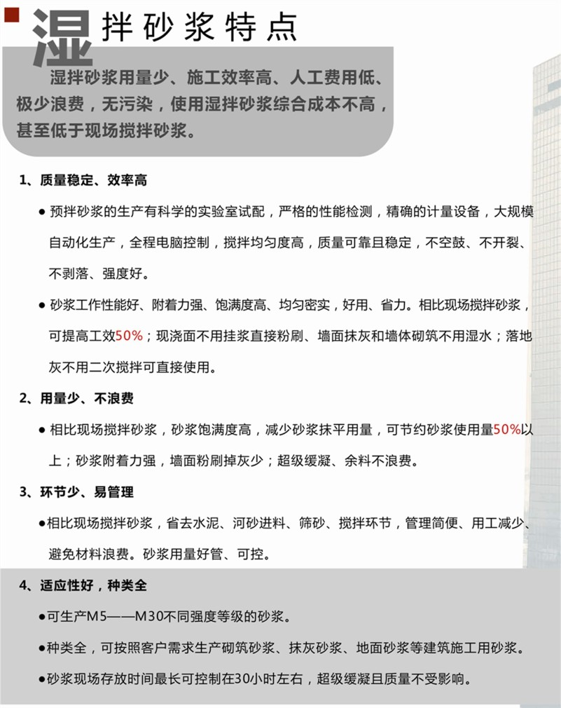 公司總投資5000多萬元,占地3萬平方米,擁有HZS-180德國進口攪拌機自動化混凝土生產(chǎn)線兩條,整個生產(chǎn)流程均為電腦化、自動化、標準化,配套“三一重工”、“中聯(lián)重科”先進的混凝土輸送設備8臺,運輸攪拌車30余臺,具有年產(chǎn)混凝土80萬方、濕拌砂漿30萬噸的供貨能力。通過綠色升級改造,建成封閉料庫5000多平方米、生產(chǎn)車間800多平方米,加裝噴淋、隔音、收塵、砂石分離機等設施,達到了國家預拌混凝土綠色生產(chǎn)JGJ/T328-2014星級管理標準。